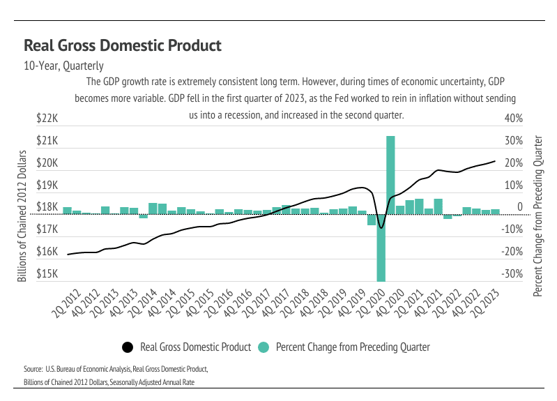 • Broadly, the economy is doing well with strong GDP growth, high employment rates and job creation, falling inflation, and growing consumer confidence. Strong economics coupled with a low supply of homes have kept prices climbing, despite sustained elevated mortgage rates.
