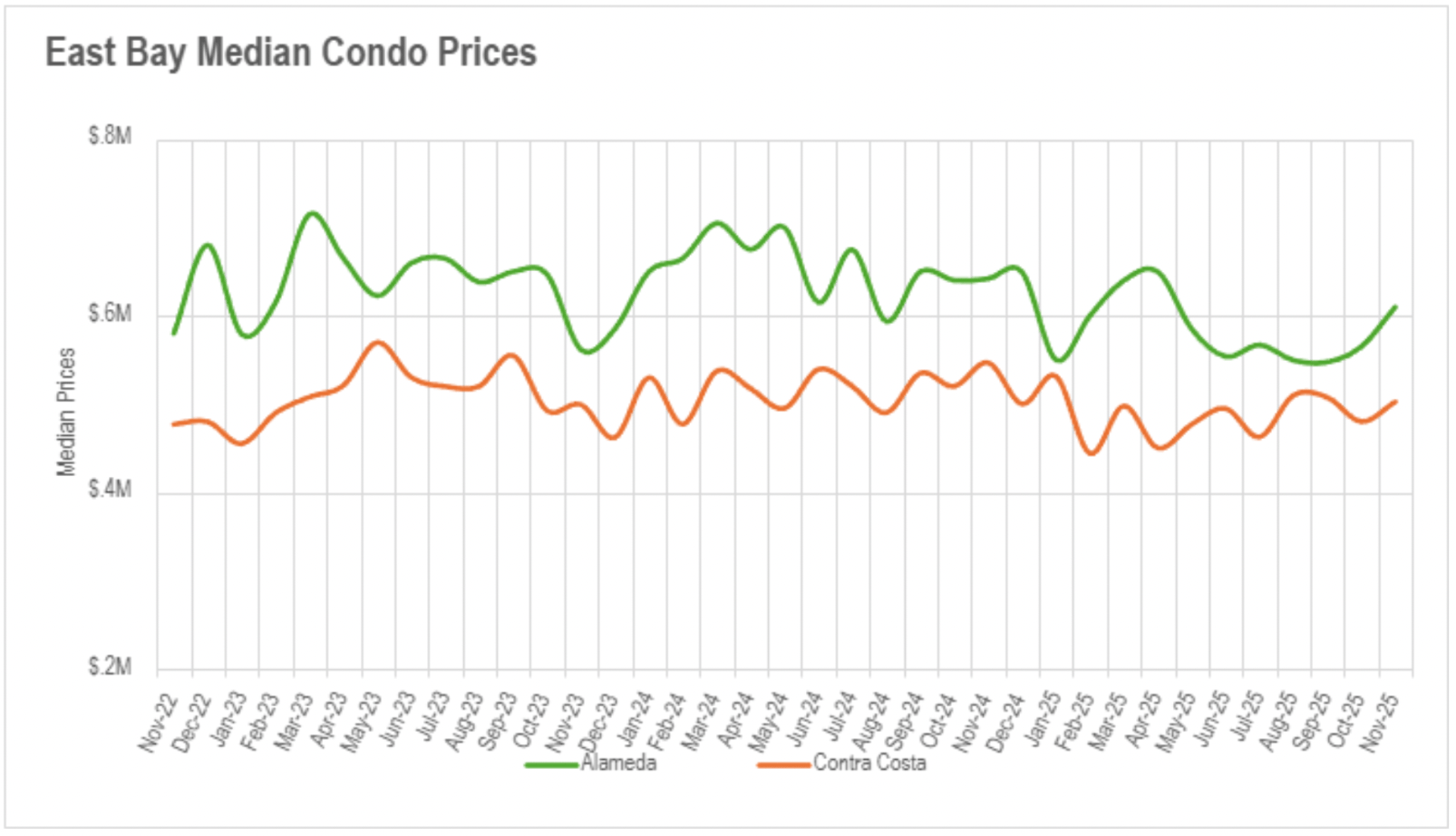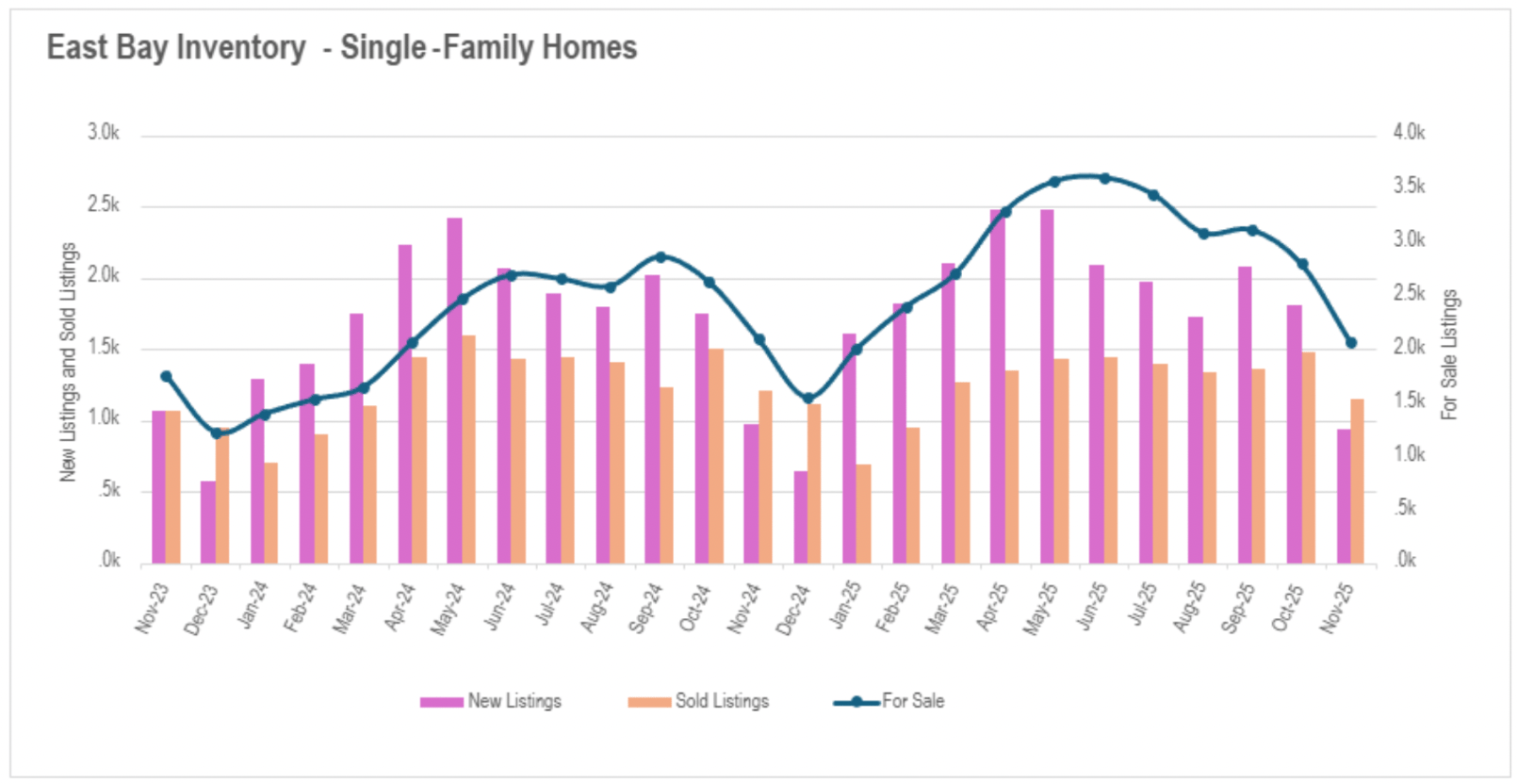 North Bay regions witnessed similarly substantial reductions with single-family availability declining 29.93% monthly and 20.14% annually, while condominiums fell 22.63% monthly and 14.04% annually. Significantly, North Bay availability levels are now beneath December 2024, indicating even steeper reductions may be approaching. East Bay markets represented the singular exception to this trajectory, demonstrating exceptional resilience with availability levels roughly unchanged annually despite the substantial corrections observed elsewhere. This steadiness is especially significant given the considerable availability accumulations the region recorded during late spring and early summer.
