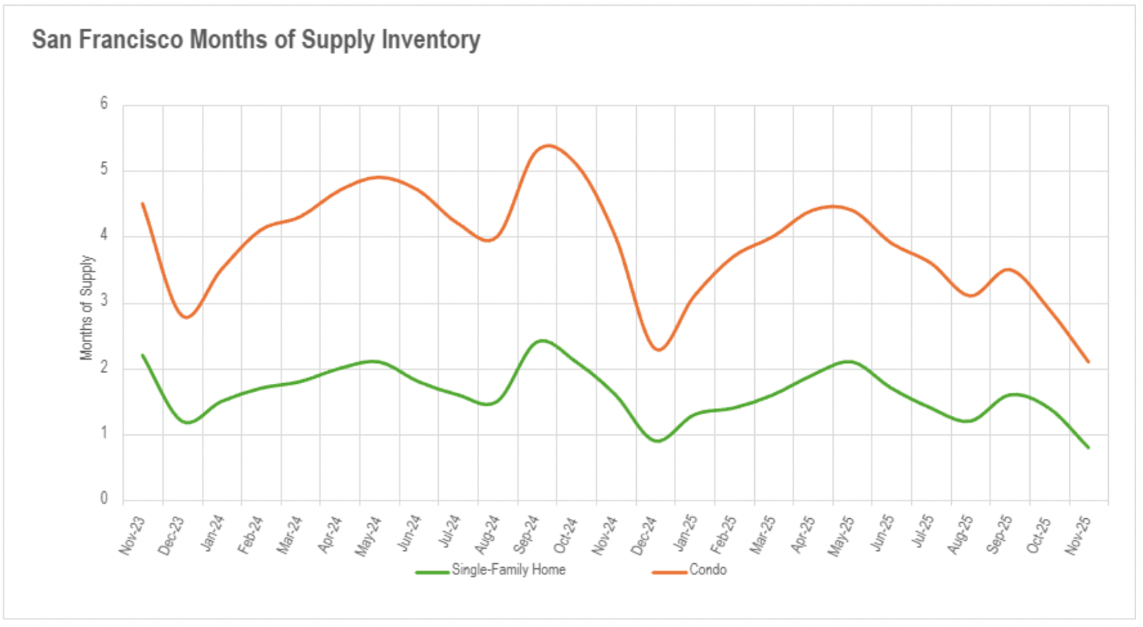 November's substantial availability reductions accelerated the Bay Area's transition toward seller-controlled environments across nearly all property categories and regions. San Francisco accomplished the most extreme seller-favorable market status in the region, with single-family properties at an unprecedented 0.8 months of supply and condominiums at merely 2.1 months - both representing deeply established seller-favorable markets with no mitigation anticipated. Silicon Valley experienced the anticipated seasonal transition toward seller-favorable markets, with single-family properties in San Mateo and Santa Clara Counties achieving exceptionally minimal 1.1 and 0.9 months of supply respectively, while Santa Cruz remained balanced at precisely 3.0 months. Silicon Valley condominiums transitioned decisively toward seller territory with San Mateo at 2.5 months, Santa Clara at 2.9 months (both nearing seller-favorable market parameters), and Santa Cruz at 3.9 months still supporting buyers.
