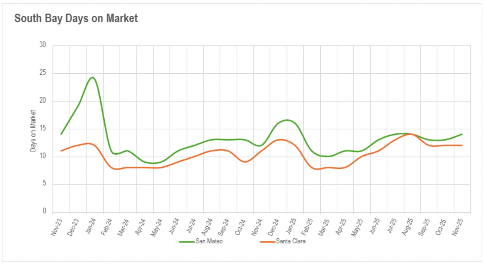 November's marketing duration data unveiled extreme divergence throughout the Bay Area, with San Francisco intensifying substantially while most other regions faced meaningful slowdowns. San Francisco's transaction momentum strengthened as availability compressed, with single-family properties now transacting in merely 13 days (declining 13.33% annually) and condominiums moving in 35 days (declining 30% annually). This acceleration means buyers possess virtually no duration to consider before submitting offers. Silicon Valley presented an inconsistent scenario - San Mateo and Santa Clara Counties sustained their exceptionally expeditious momentum with single-family properties transacting in two weeks or less, but Santa Cruz County recorded a substantial slowdown with single-family properties requiring 109.52% additional market duration than last year. Silicon Valley condominium markets remained difficult throughout.