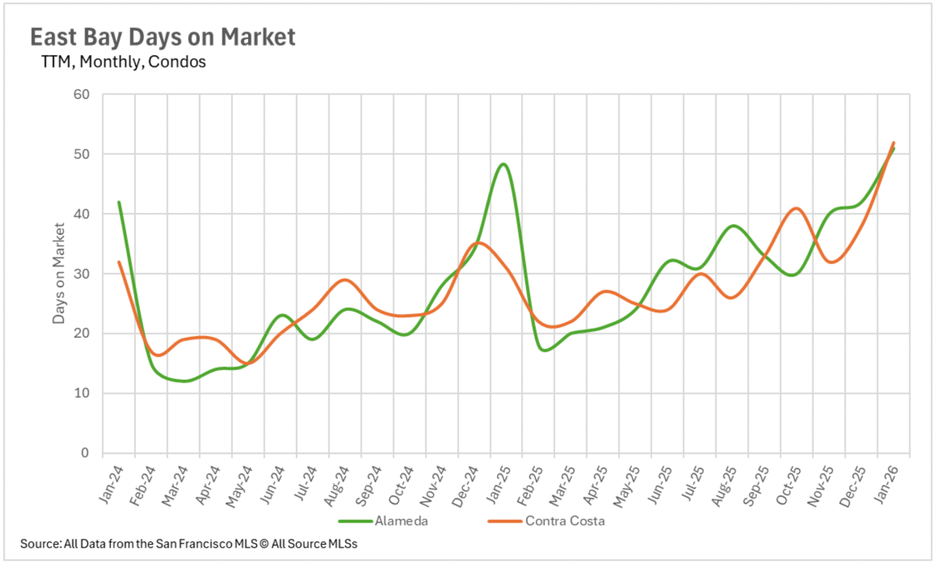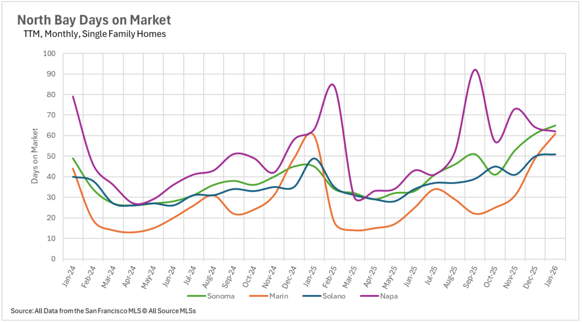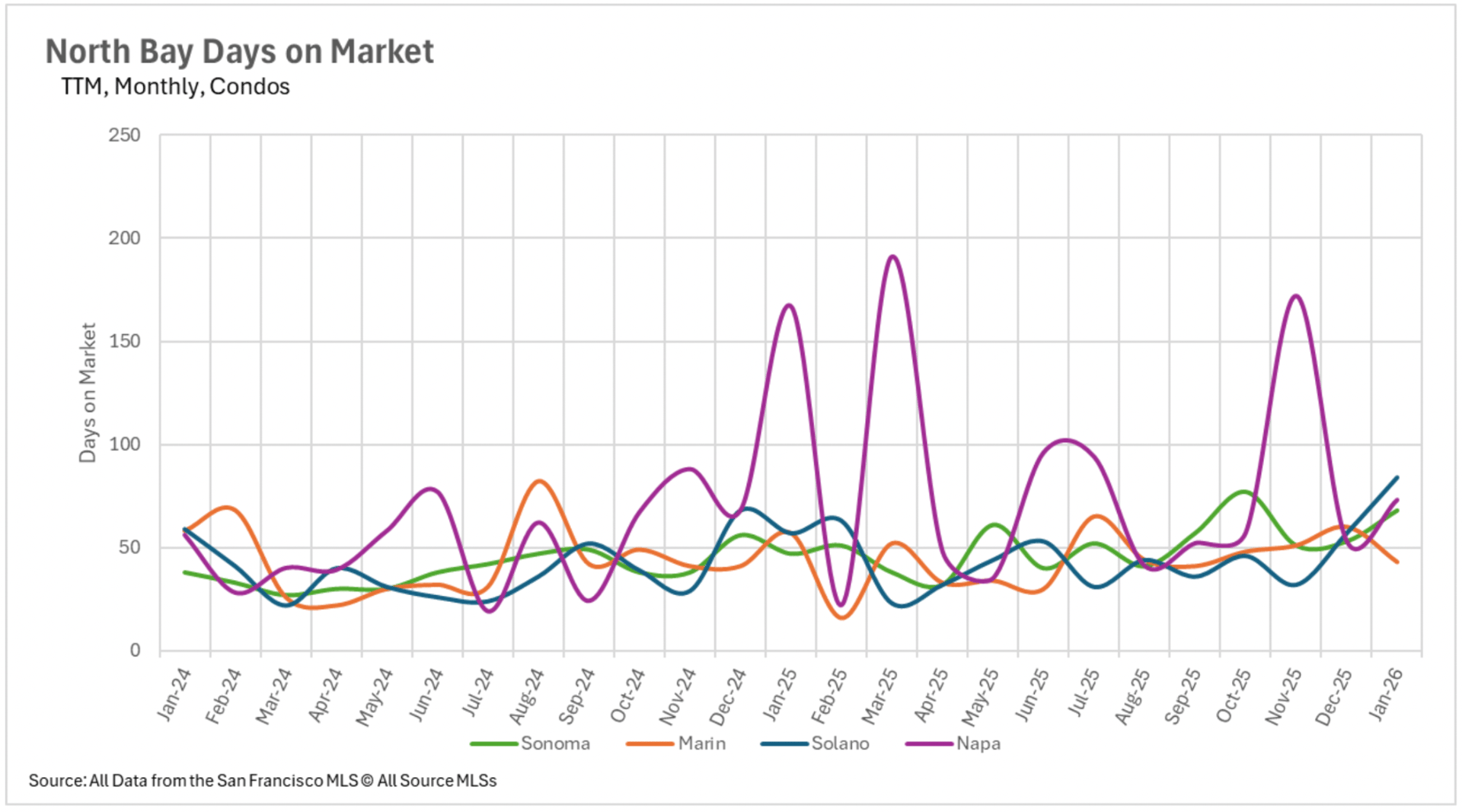 The divergence between the single-family property market and the condominium market continues expanding regarding marketing duration. In San Francisco, the typical single-family property is transacting in merely 13 days, a 56.67% reduction compared to last January. Alameda County single-family properties are also moving at an efficient momentum, transacting in just 19 days on average. Nevertheless, the condominium sector presents a completely different scenario. Santa Clara County condominiums are requiring an average of 55 days on the market, a 57.14% annual increase, while Santa Cruz County condominiums are requiring 67 days, more than double what we documented in January 2025. In North Bay markets, Sonoma County single-family properties are requiring 44.44% additional market duration despite plummeting availability levels, indicating that even in a constrained market, buyers are exercising caution and deliberation with their offers.