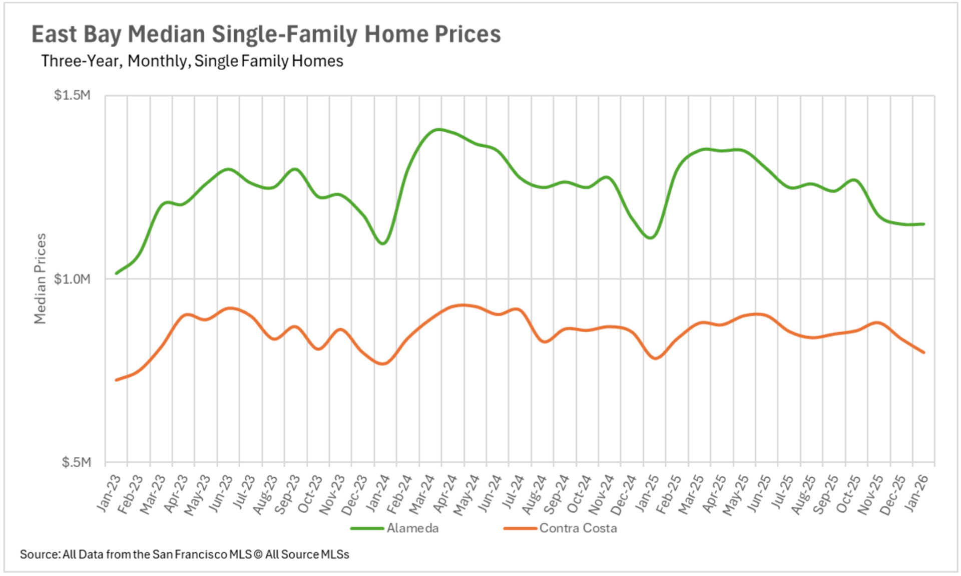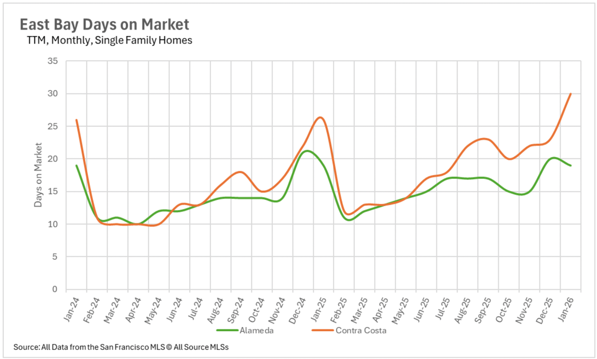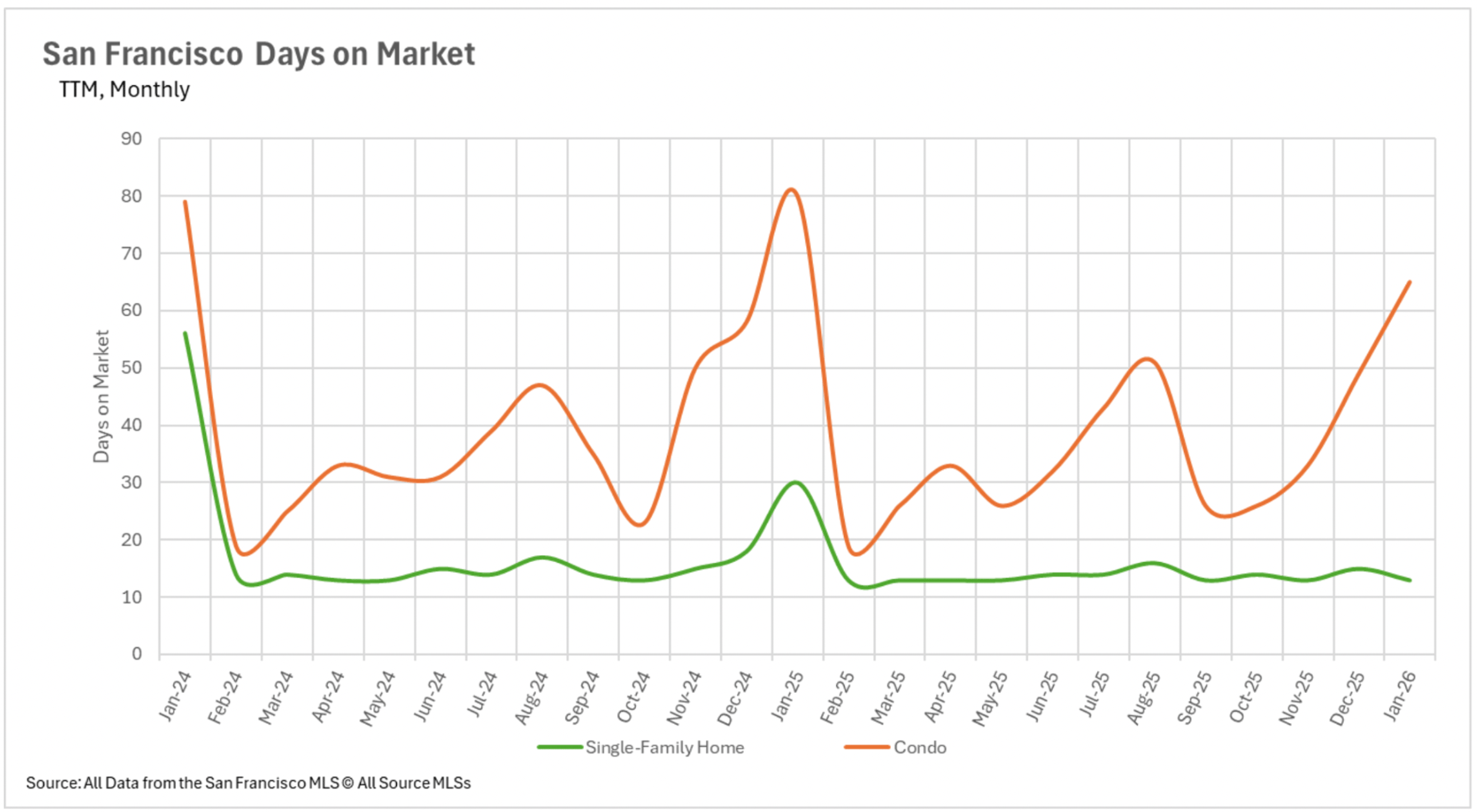 The divergence between the single-family property market and the condominium market continues expanding regarding marketing duration. In San Francisco, the typical single-family property is transacting in merely 13 days, a 56.67% reduction compared to last January. Alameda County single-family properties are also moving at an efficient momentum, transacting in just 19 days on average. Nevertheless, the condominium sector presents a completely different scenario. Santa Clara County condominiums are requiring an average of 55 days on the market, a 57.14% annual increase, while Santa Cruz County condominiums are requiring 67 days, more than double what we documented in January 2025. In North Bay markets, Sonoma County single-family properties are requiring 44.44% additional market duration despite plummeting availability levels, indicating that even in a constrained market, buyers are exercising caution and deliberation with their offers.