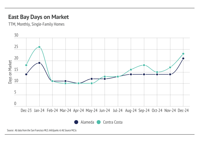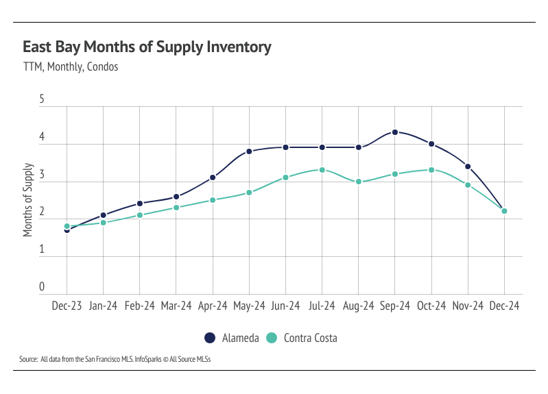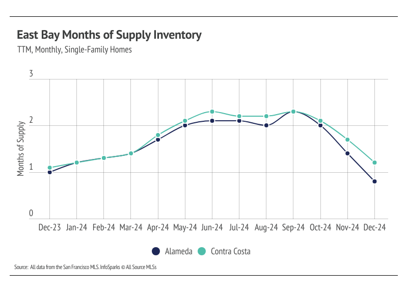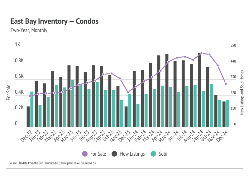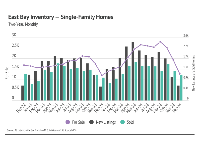 The 2024 housing market looked progressively healthier with each passing month until Q4. The promising build in inventory during the first nine months of the year was wiped out, and East Bay inventory fell near record lows in December.