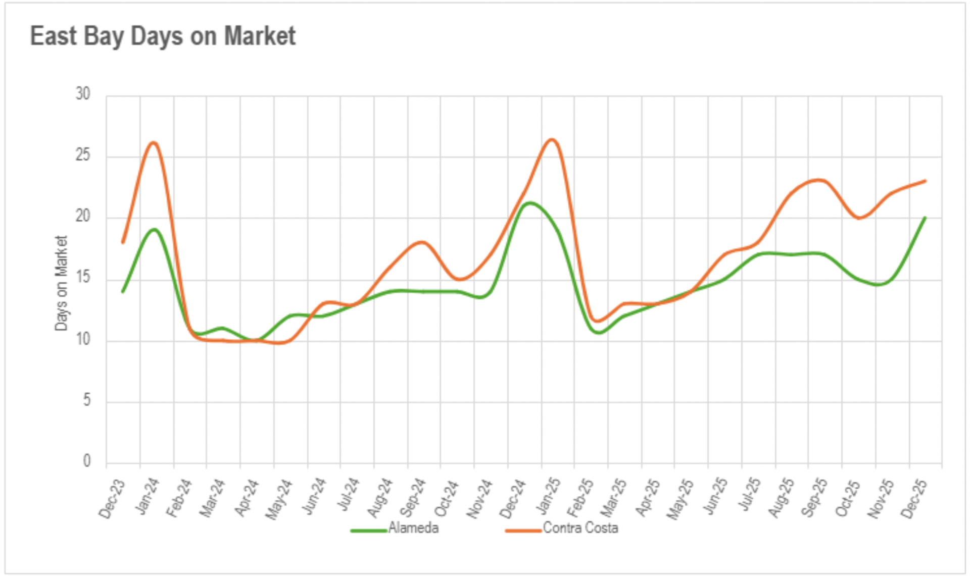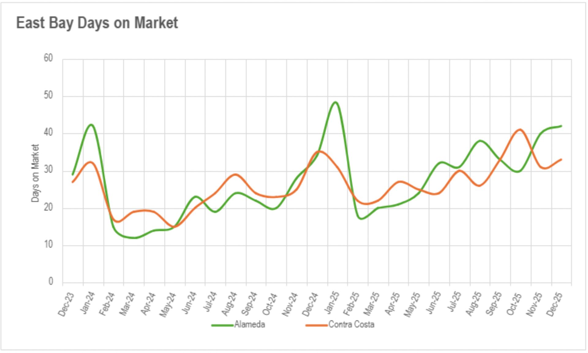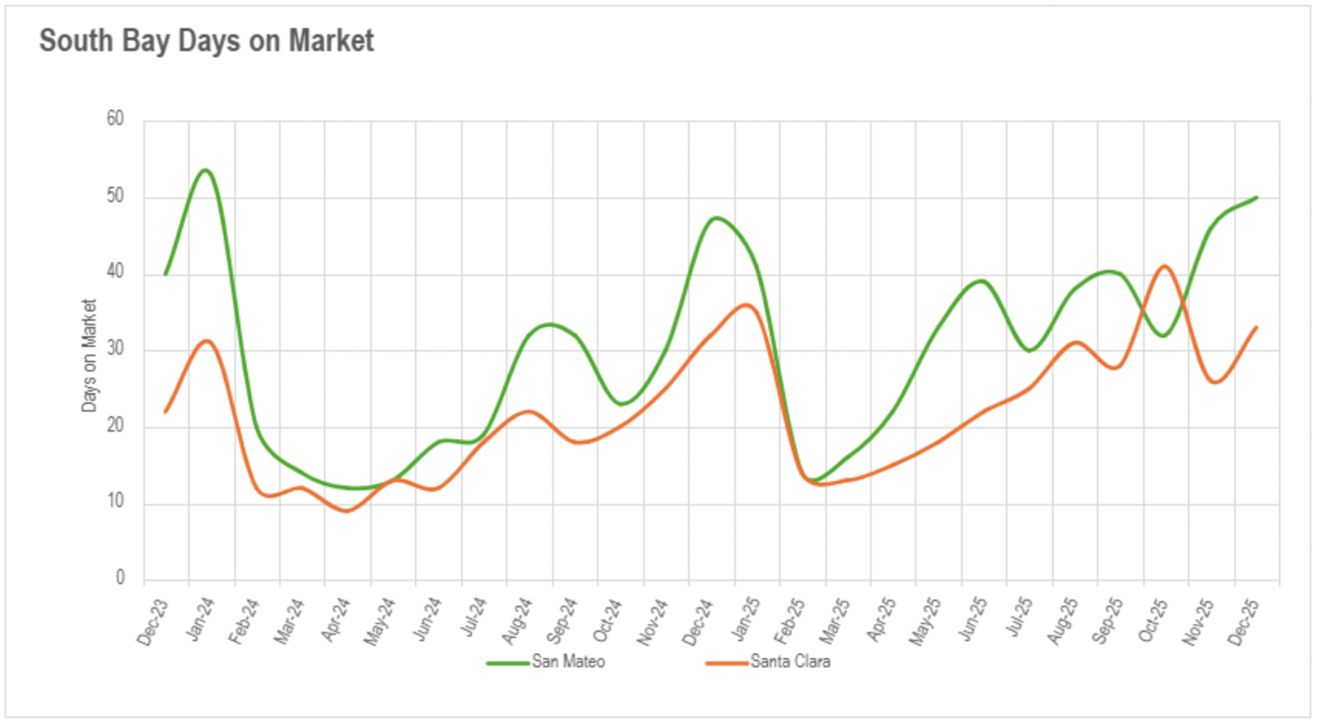 Marketing duration patterns diverged considerably throughout the region, with San Francisco and portions of East Bay markets intensifying while other areas like Santa Cruz County faced meaningful slowdowns despite constrained availability.