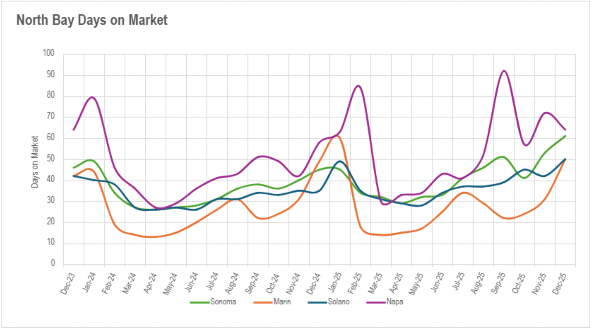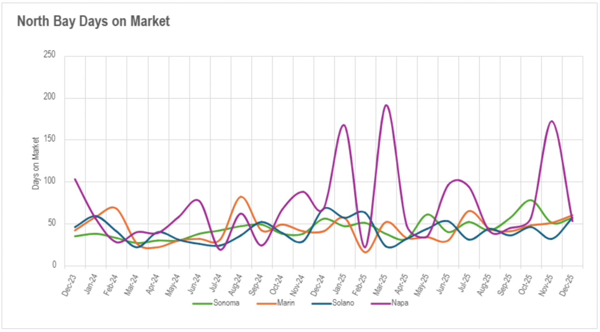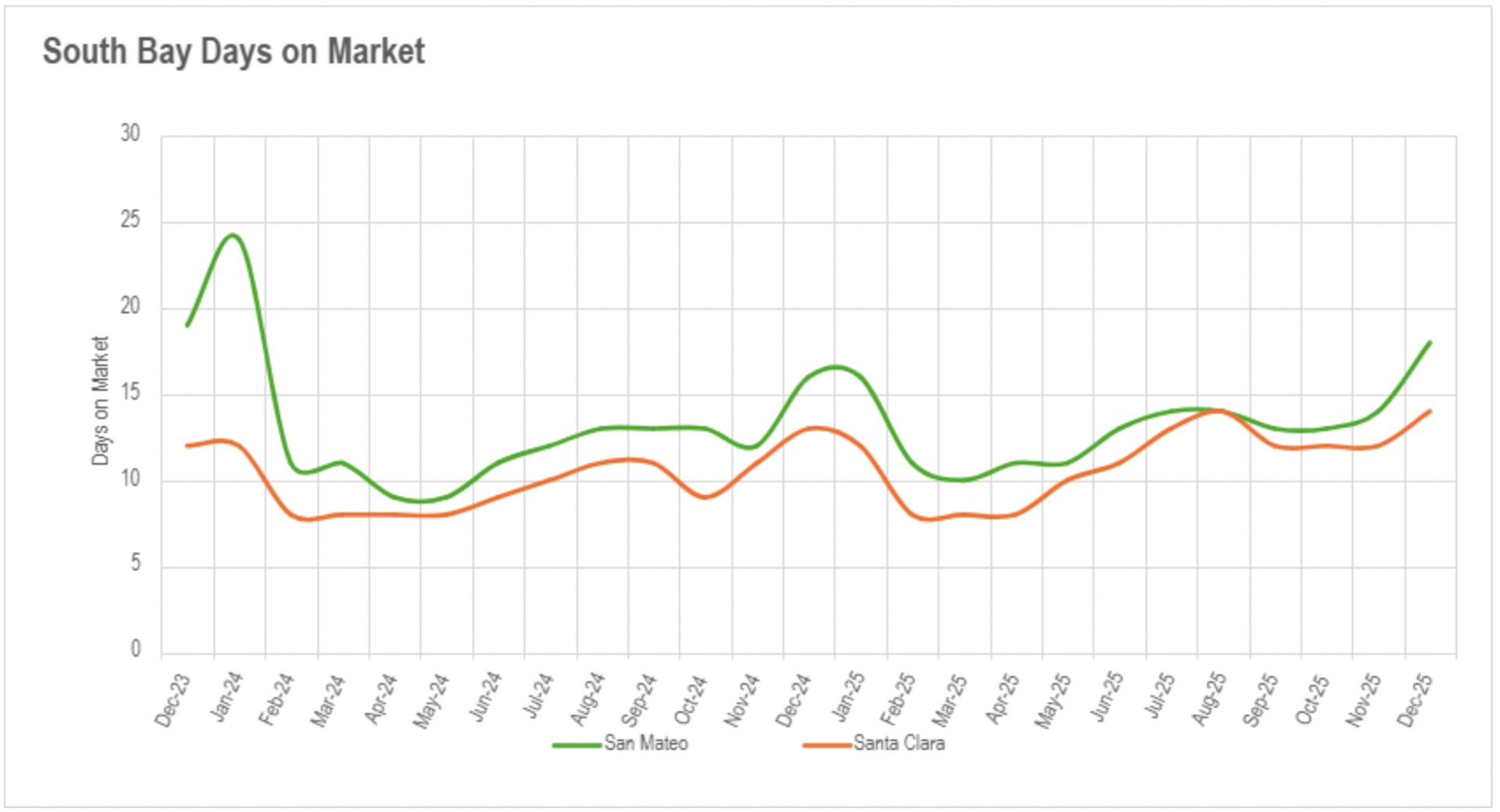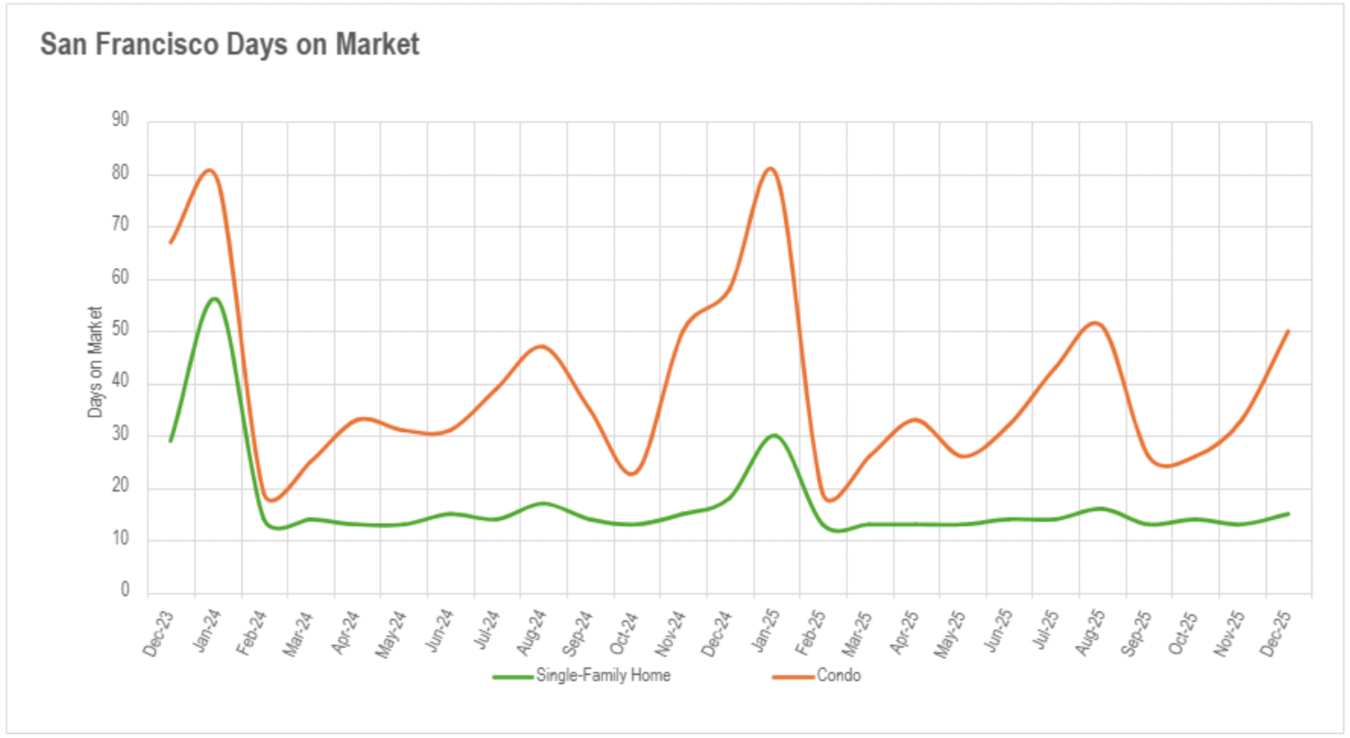 Marketing duration patterns diverged considerably throughout the region, with San Francisco and portions of East Bay markets intensifying while other areas like Santa Cruz County faced meaningful slowdowns despite constrained availability.