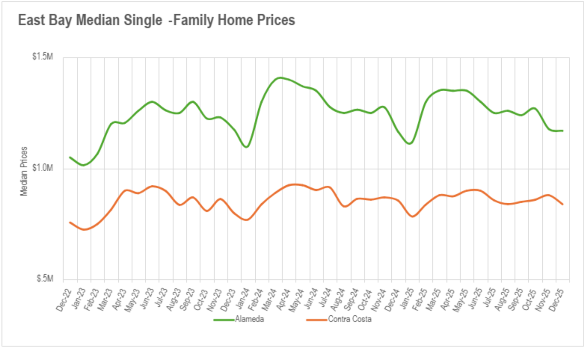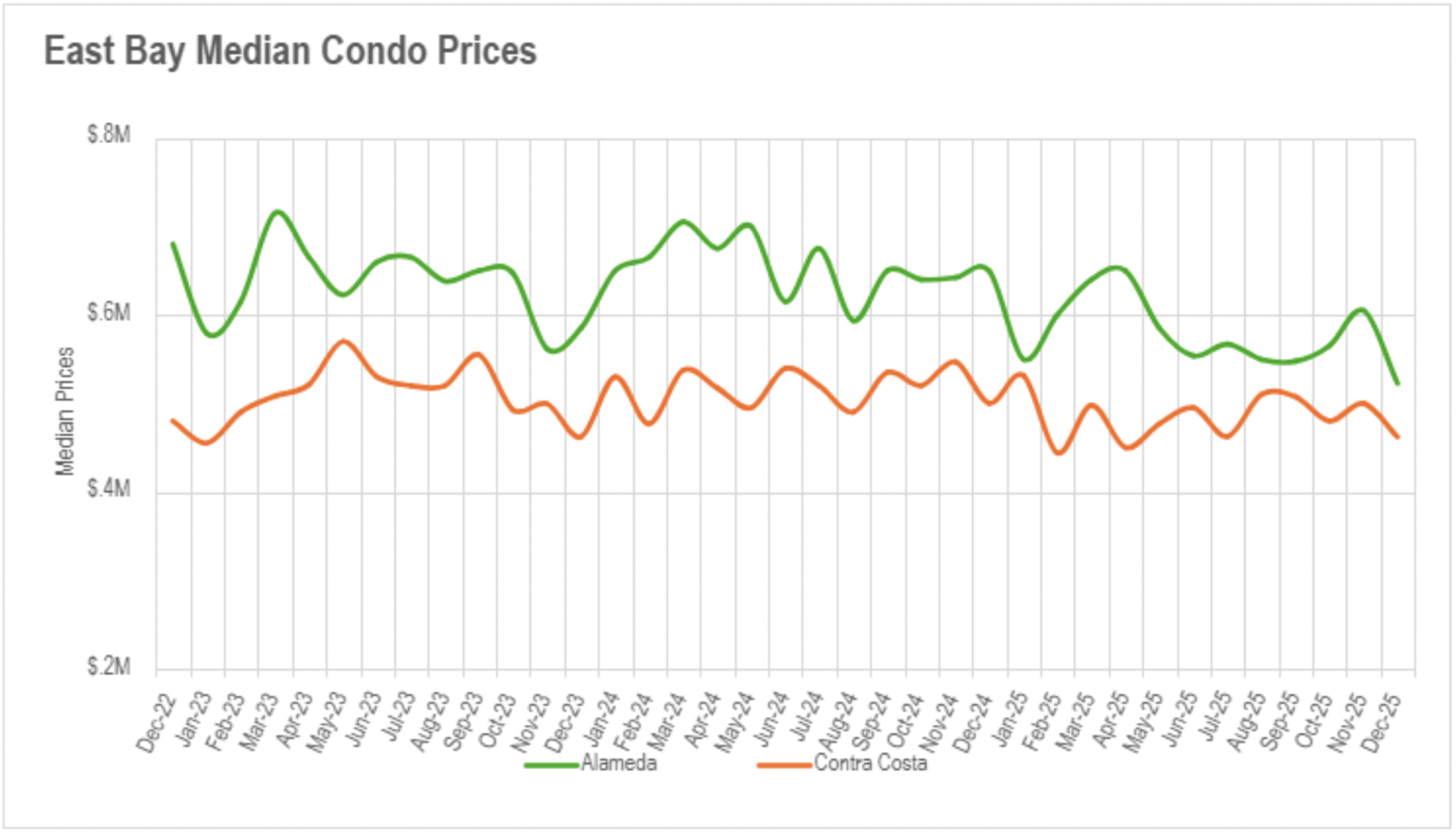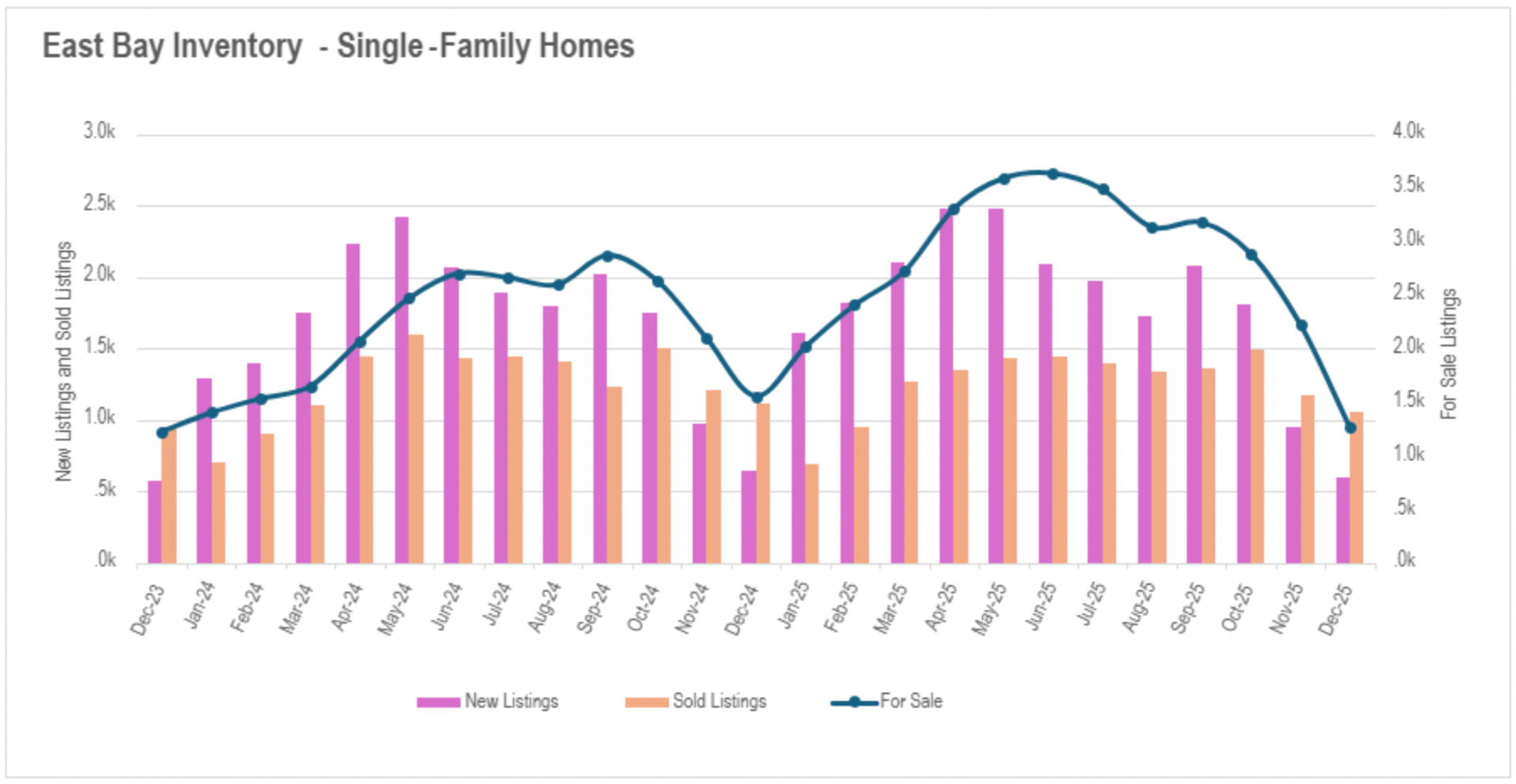 North Bay regions witnessed single-family availability crater by 43.56% monthly and 38.85% annually to just 1,407 properties, while condominium availability fell 36.83% monthly and 27.99% annually to merely 211 units. This reduction was intensified by new listings plummeting 51.19% annually for single-family properties and 54.93% for condominiums. East Bay markets displayed relatively moderate but still meaningful reductions, with single-family availability declining 18.70% annually to 1,265 properties and condominium availability falling 16.48% to 512 units. Throughout all regions, the magnitude of availability reduction surpassed characteristic seasonal configurations, indicating that buyers who had been observing throughout 2025 finally commenced engaging, while new listings diminished substantially as sellers withdrew during the holidays.