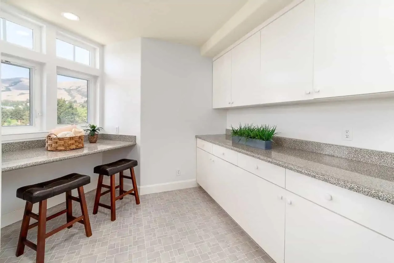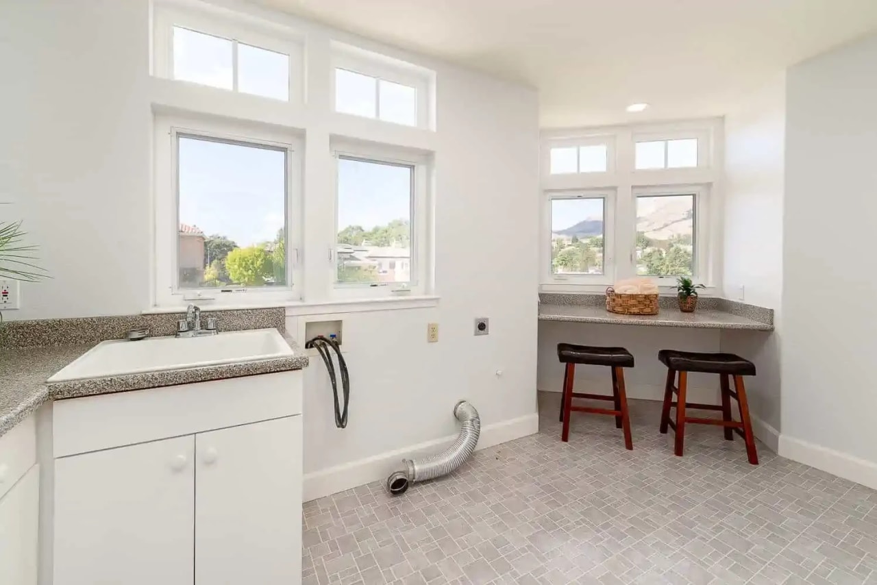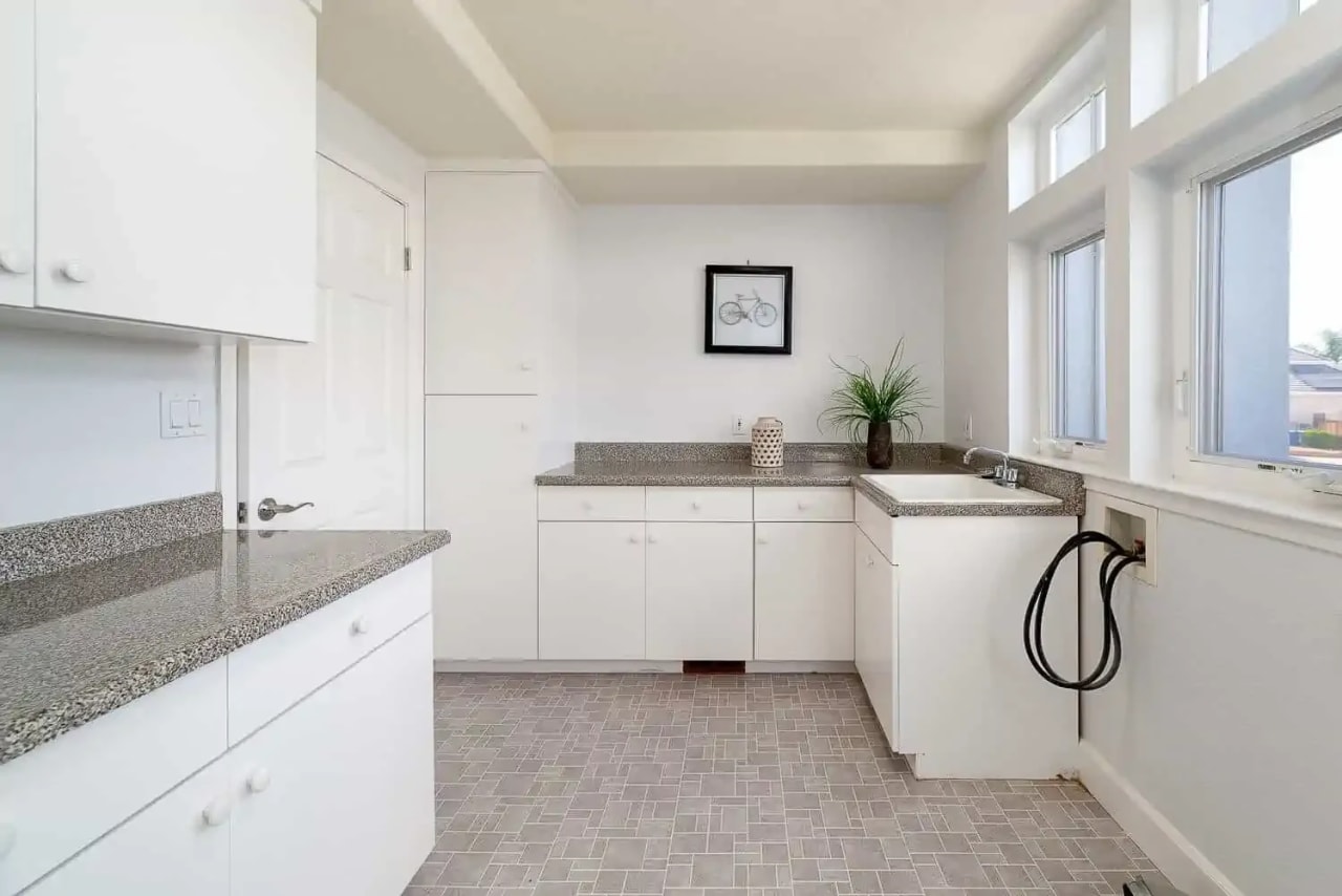 • Spacious laundry room with sink, lots of cabinet storage, laundry chute