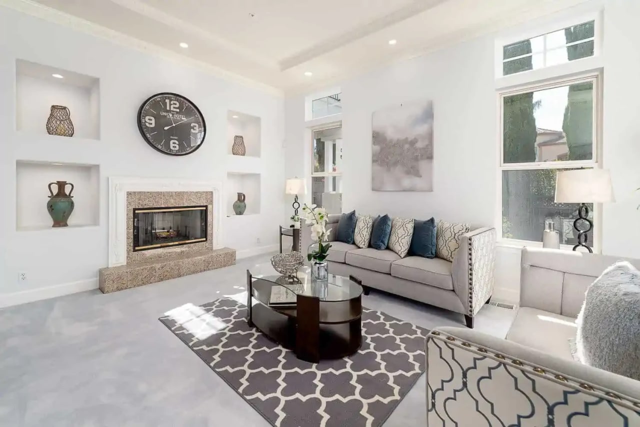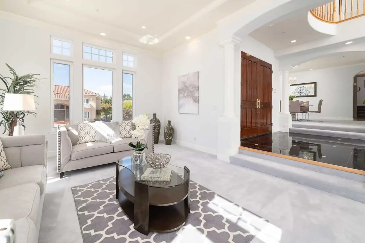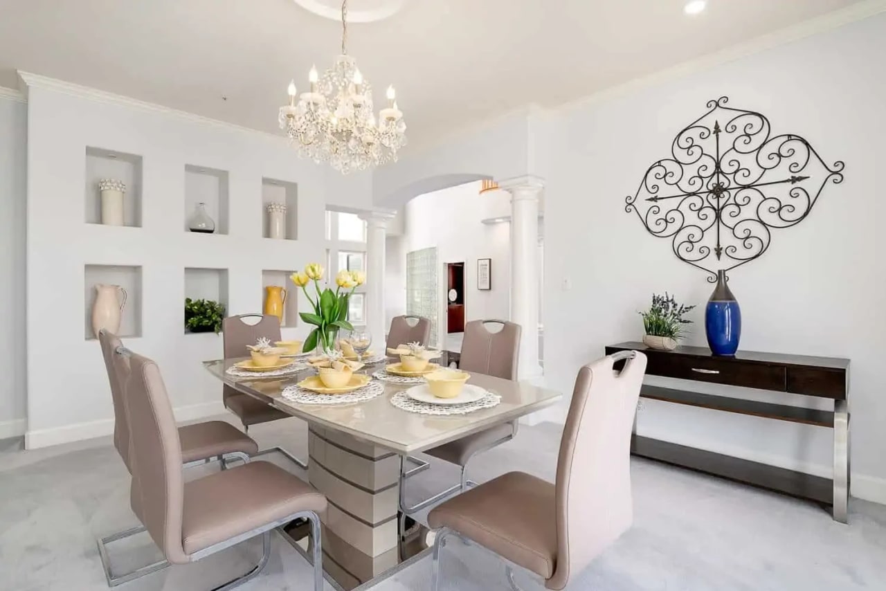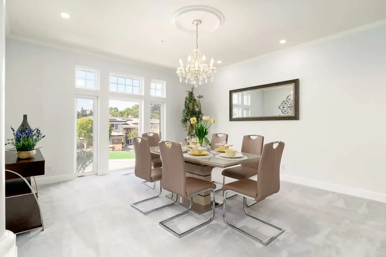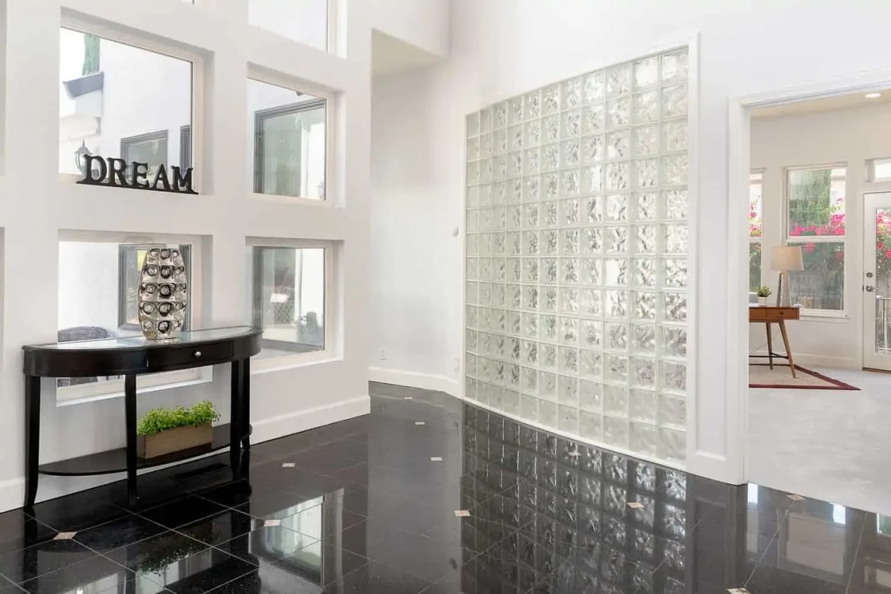 • Double-door entrance boasts a gorgeous marble floor with cathedral ceiling and elegant chandelier