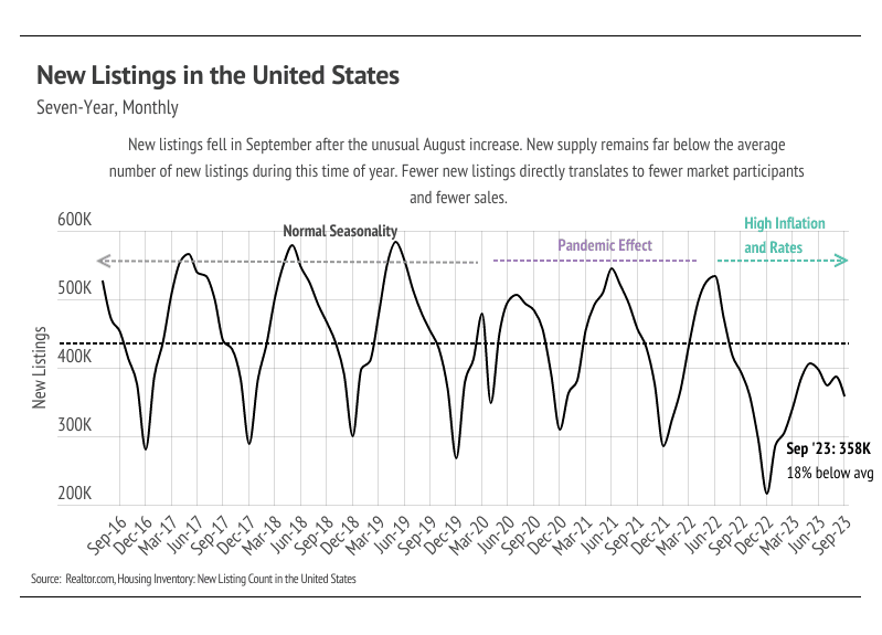 Typically, demand begins to decline in the fall and bottoms out in January, so the low supply of homes should be less of an issue. With mortgage rates at a 23-year high, quality listings are going to have the most competition. This isn’t unusual, but potential homebuyers aren’t nearly as willing to pay a premium for a fixer upper as they were in 2020 and 2021.