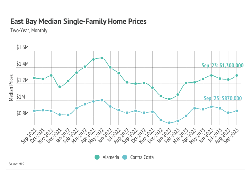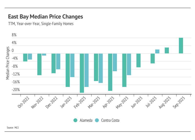 Prices rose month over month across the East Bay
