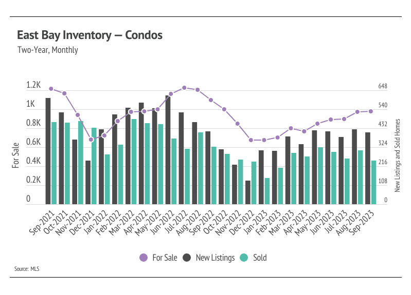• Active listings in the East Bay rose from August to September, continuing the 9-month upward trend. Rising inventory is only good for the undersupplied East Bay market, which is still 26% below last year’s level.